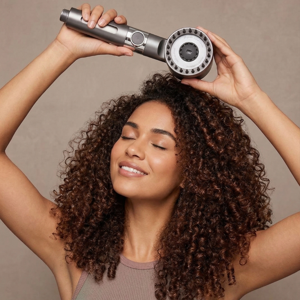 Le filtre intégré débarrasse votre eau du chlore et du calcaire, pour des cheveux et une peau protégés contre la sécheresse et les irritations.